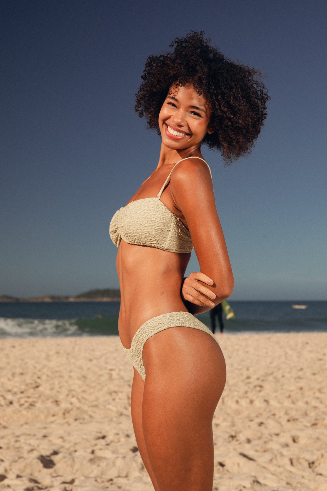 - Taille du modèle: Beatriz porte une taille S. Les mesures du mannequin: Hauteur 176 cm, Buste: 79 cm, Tour de hanches: 95.5 cm, Tour de taille: 60 cm
