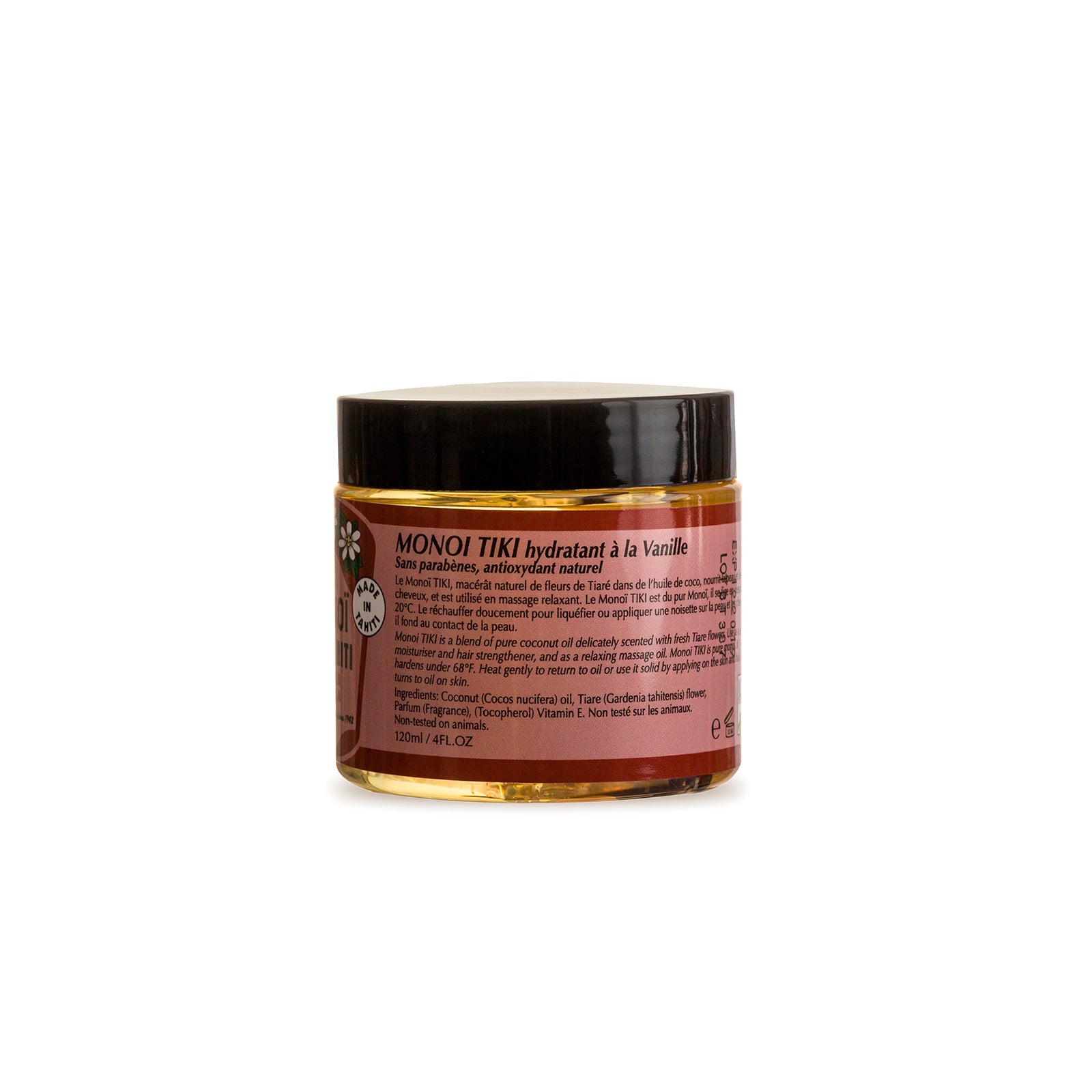 - Matière: 99% Monoï de Tahiti Appellation of Origin (AO). Cocos nucifera (coconut) oil, Gardenia Taitensis Flower Extract, Parfum (Fragrance), Tocopherol (Vitamin E).