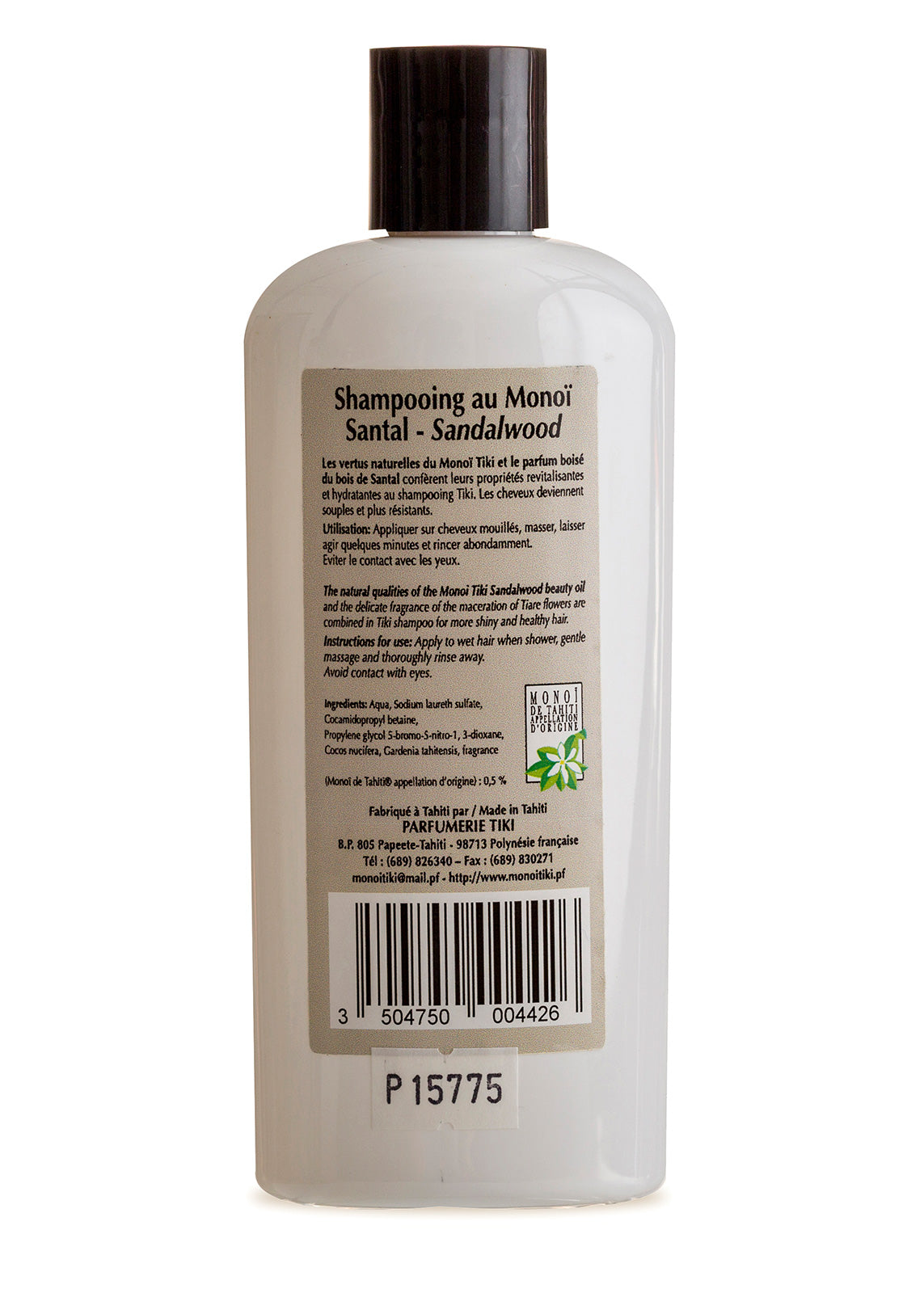 - Matière: 0.5% Monoï de Tahiti Appellation of Origin (AO). Aqua, Sodium laureth sulfate, Cocamidopropyl betaine, Propylene glycol 5-bromo-5-nitro-1,3-dioxane, Cocos nucifera oil, Gardenia taitensis flower extract, Parfum (Fragrance), Tocopherol (Vitamin E), Alpha i