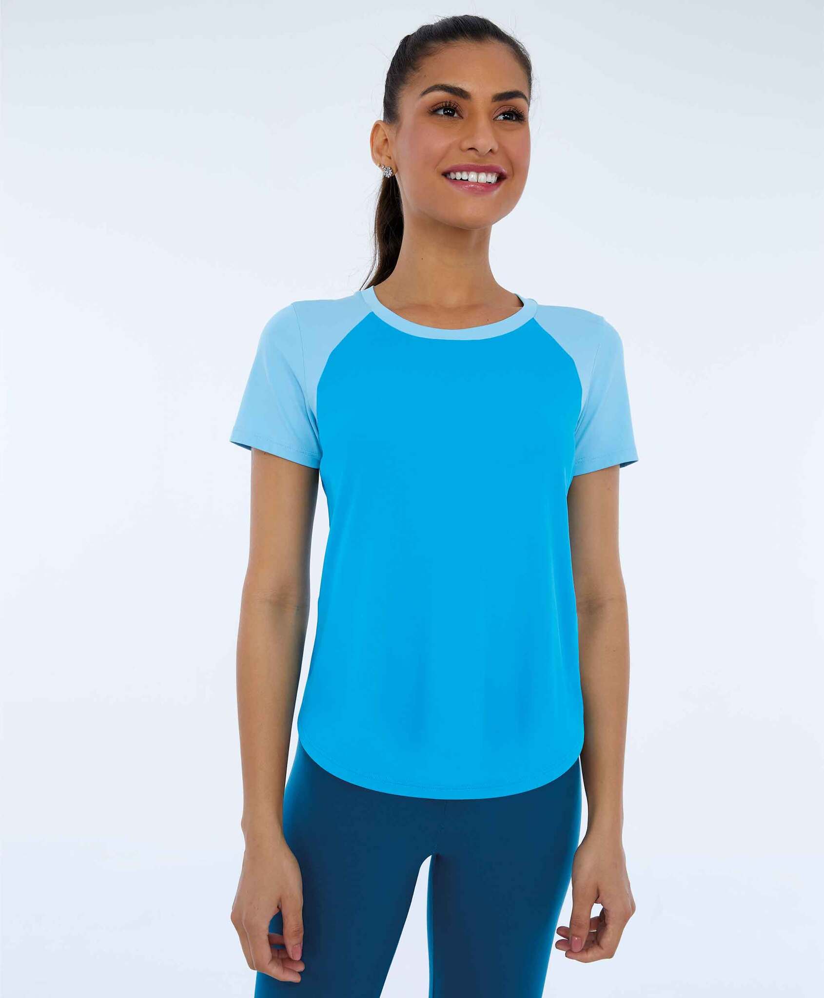 Top Blackout Decote Alto Recortes Azul Vivid